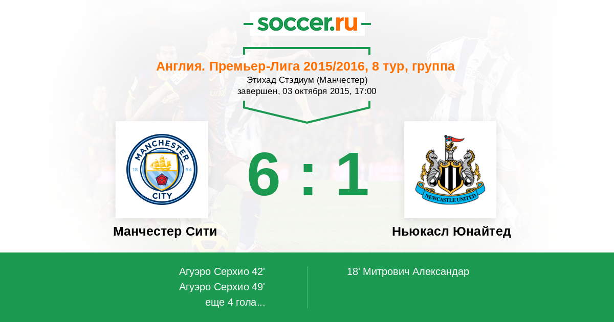 Протокол матча Манчестер Сити против Ньюкасл Юнайтед