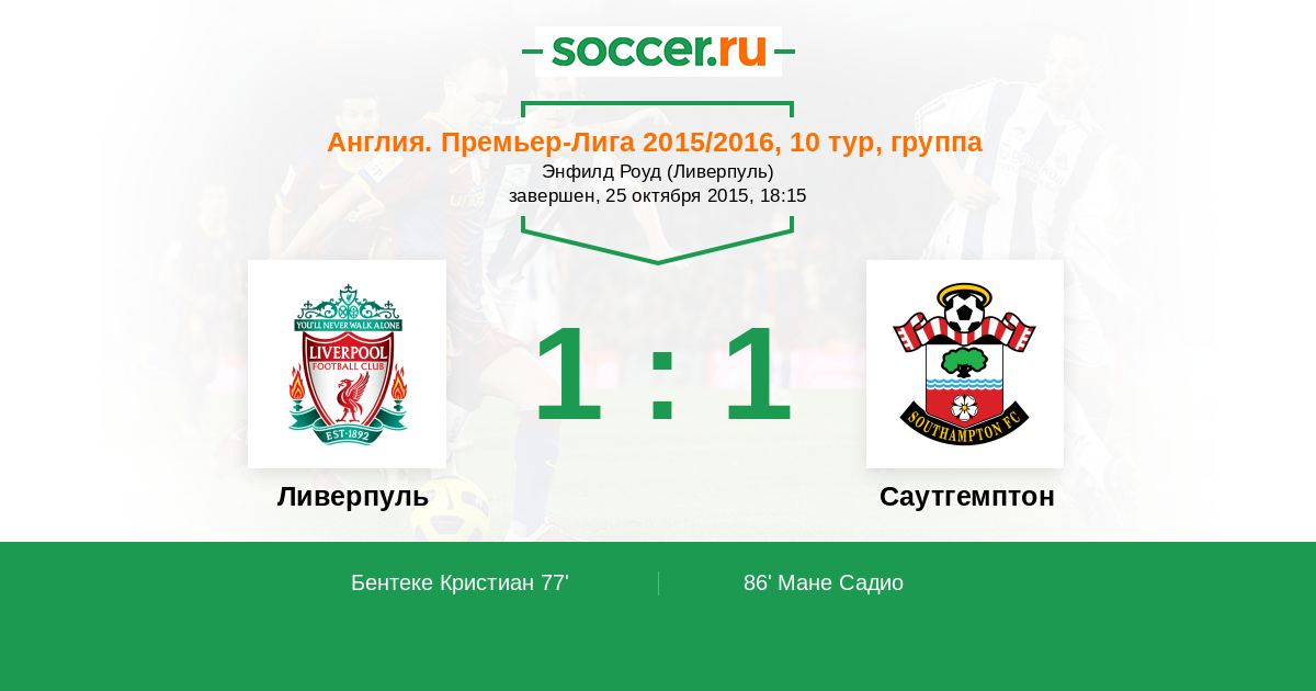 Протокол матча Ливерпуль против Саутгемптон