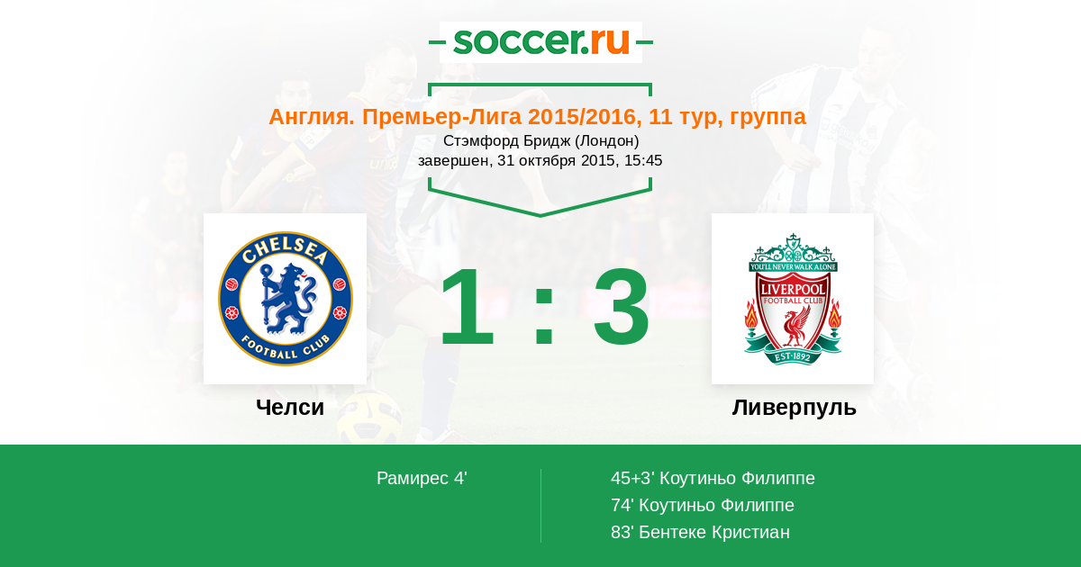 Протокол матча Челси против Ливерпуль