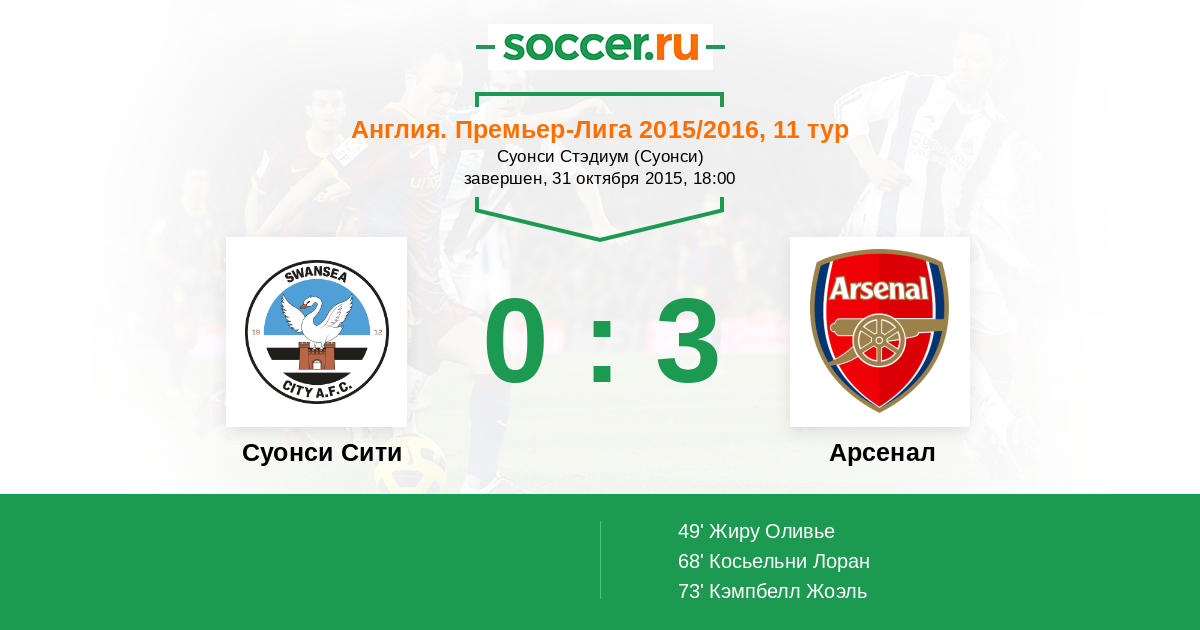 73' (0:3) Кэмпбелл Жоэль (28) (Озил Месут (11))