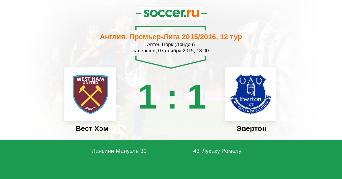 Протокол матча Вест Хэм против Эвертон