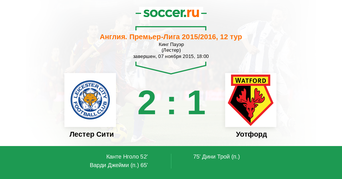 Протокол матча Лестер Сити против Уотфорд
