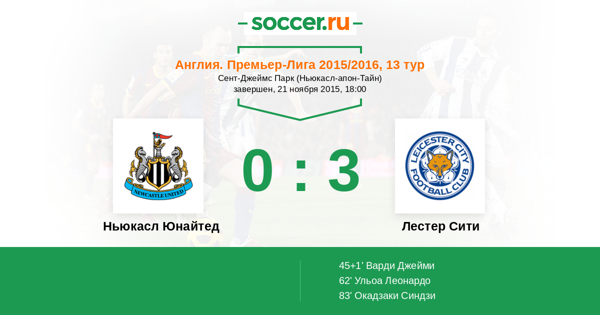 Протокол матча Ньюкасл Юнайтед против Лестер Сити