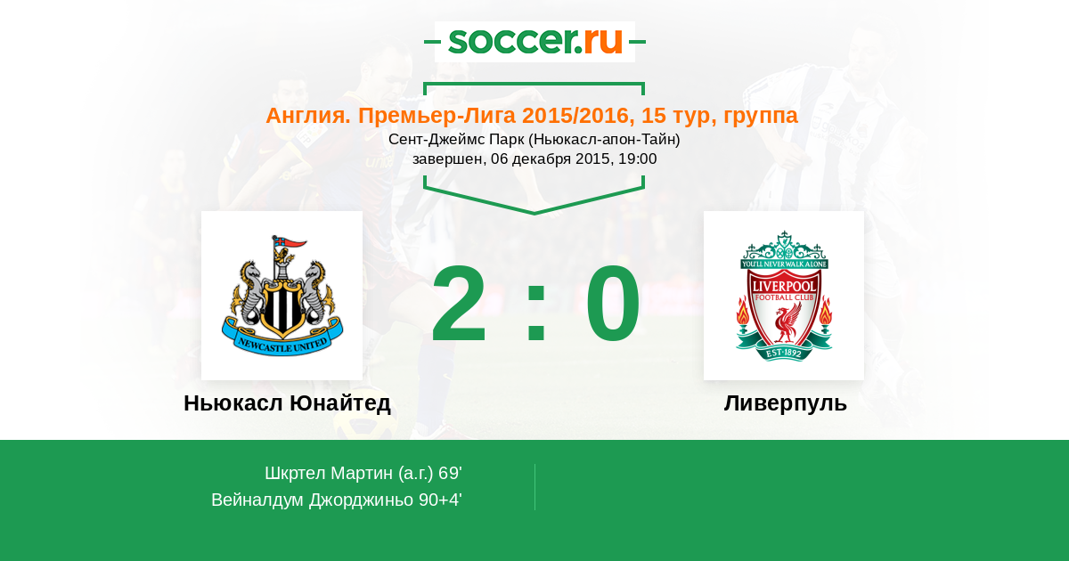 Протокол матча Ньюкасл Юнайтед против Ливерпуль
