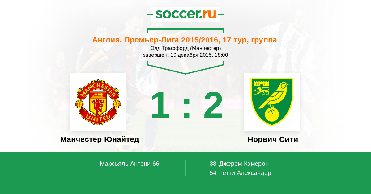Протокол матча Манчестер Юнайтед против Норвич Сити