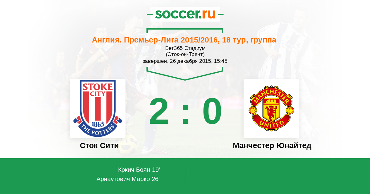 Протокол матча Сток Сити против Манчестер Юнайтед