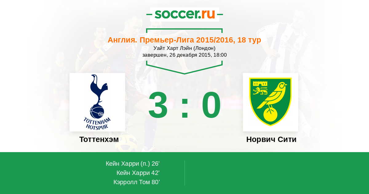 Протокол матча Тоттенхэм против Норвич Сити