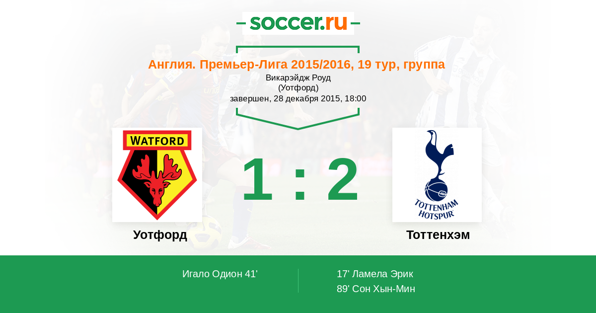 89' (1:2) Сон Хын-Мин (7) (Триппьер Киран (16))