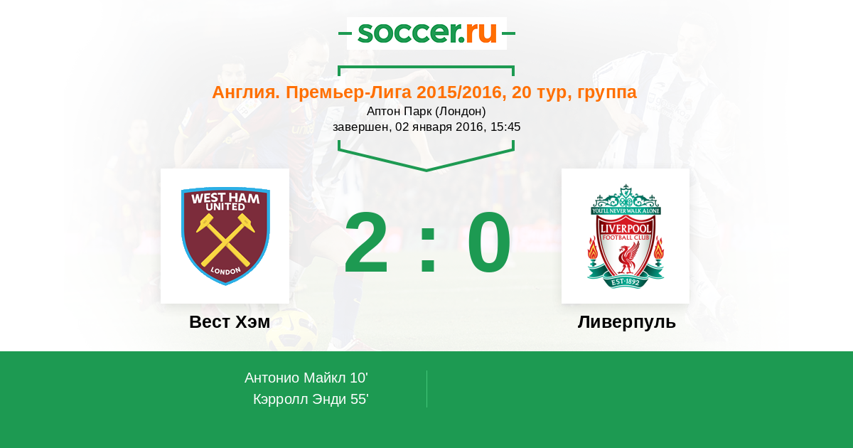 Протокол матча Вест Хэм против Ливерпуль