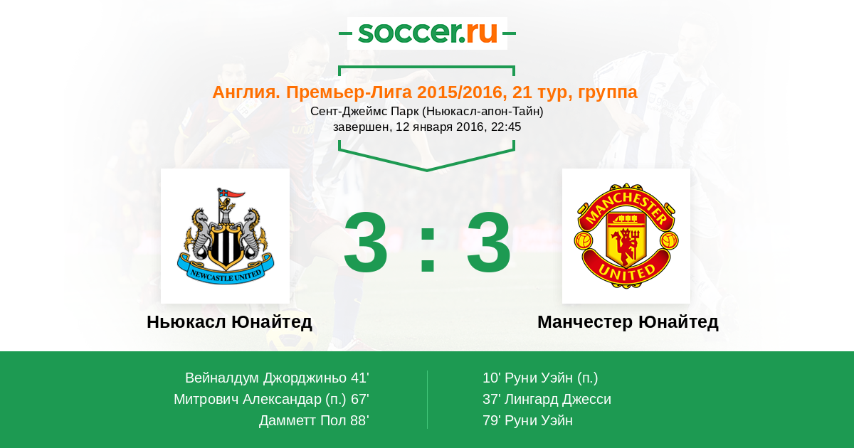 Протокол матча Ньюкасл Юнайтед против Манчестер Юнайтед