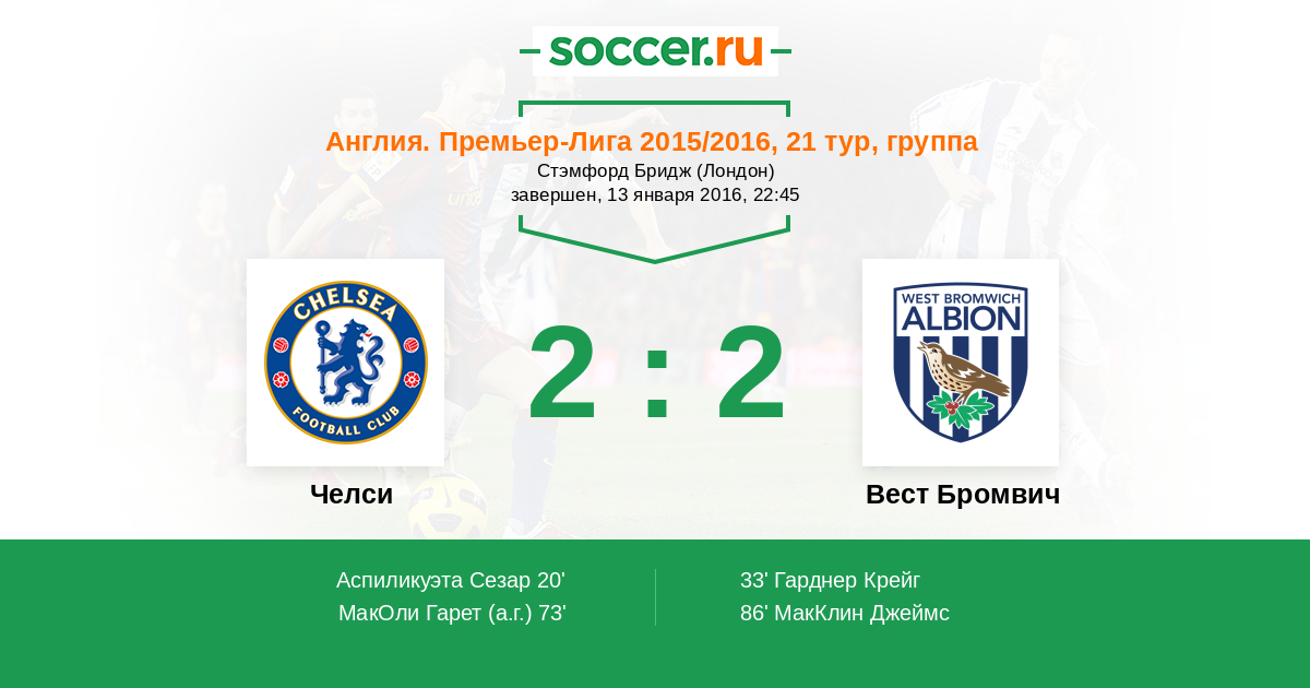 Протокол матча Челси против Вест Бромвич