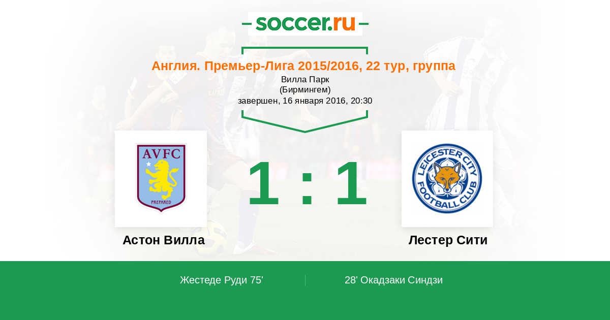 Протокол матча Астон Вилла против Лестер Сити