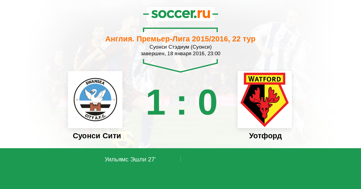 Протокол матча Суонси Сити против Уотфорд