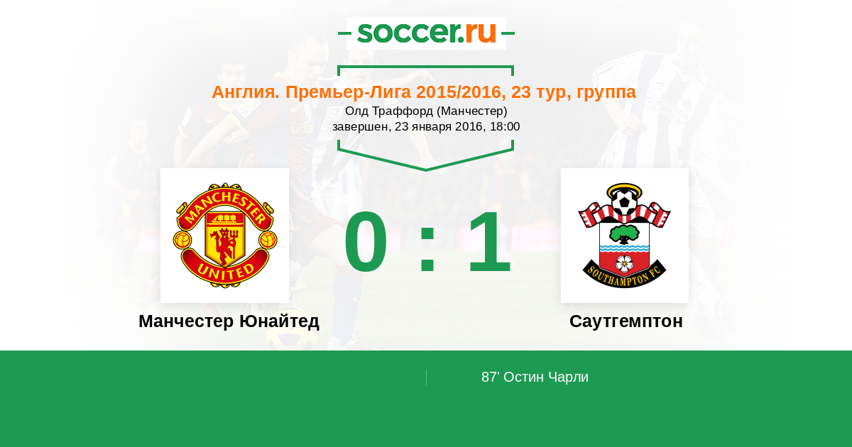 Протокол матча Манчестер Юнайтед против Саутгемптон