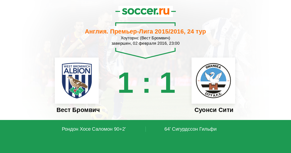 Протокол матча Вест Бромвич против Суонси Сити