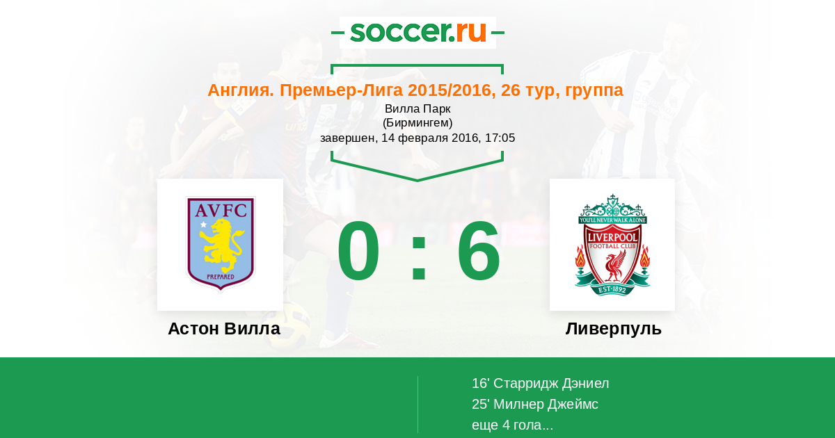 16' (0:1) Старридж Дэниел (15) (Коутиньо Филиппе (10))
