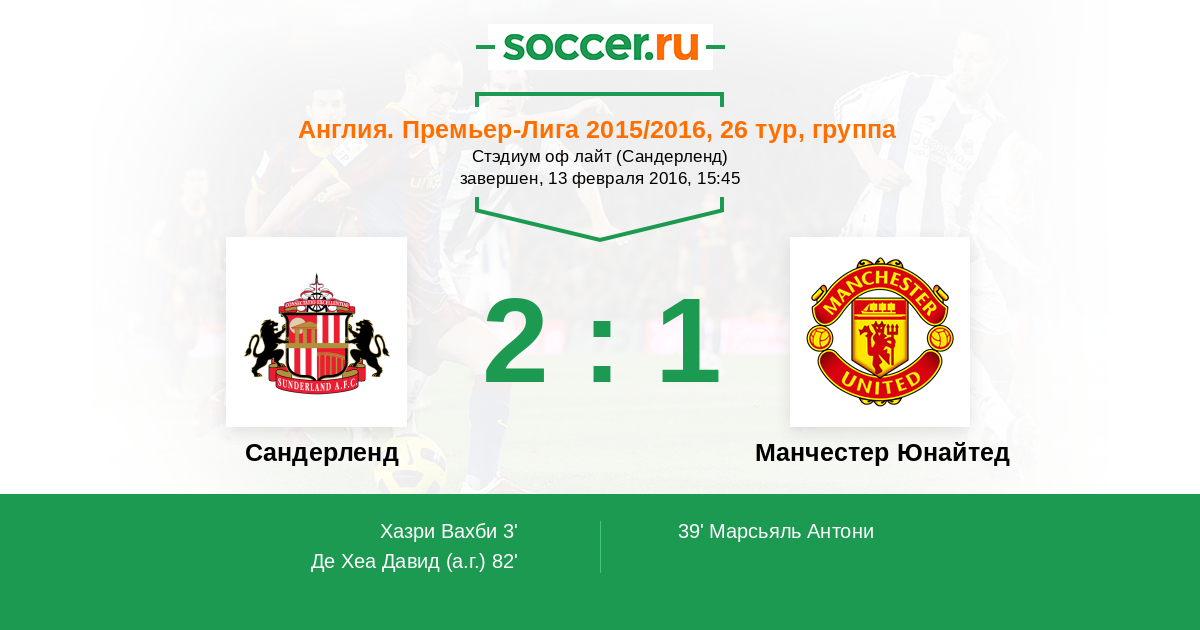 Протокол матча Сандерленд против Манчестер Юнайтед