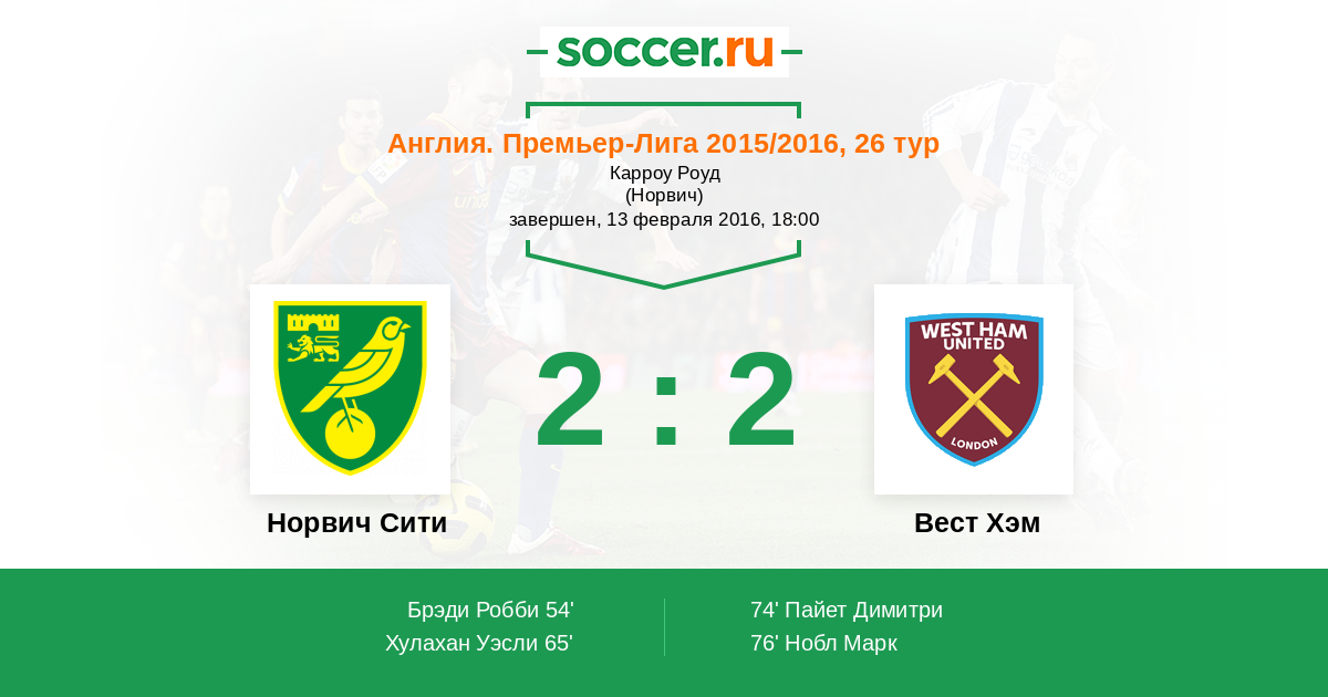 Протокол матча Норвич Сити против Вест Хэм