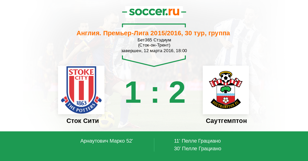 Протокол матча Сток Сити против Саутгемптон
