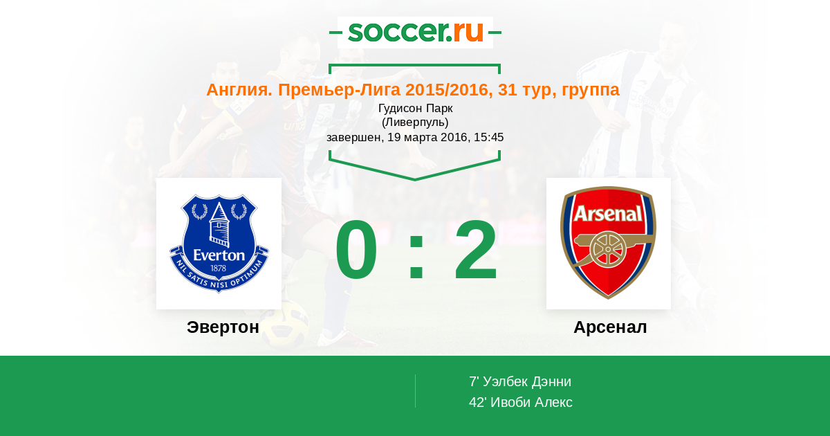 Протокол матча Эвертон против Арсенал