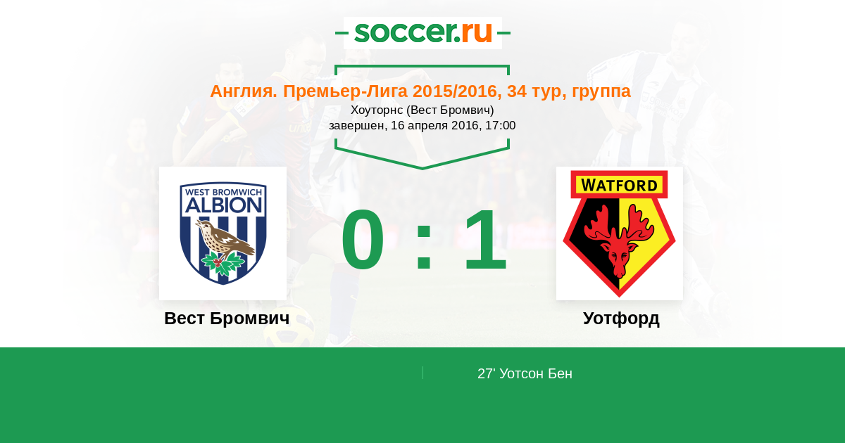 Протокол матча Вест Бромвич против Уотфорд