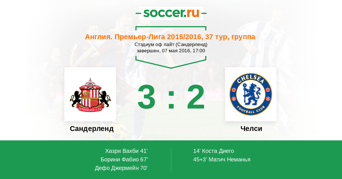 Протокол матча Сандерленд против Челси
