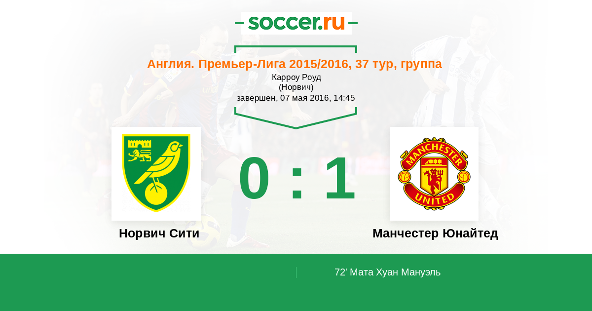 Протокол матча Норвич Сити против Манчестер Юнайтед