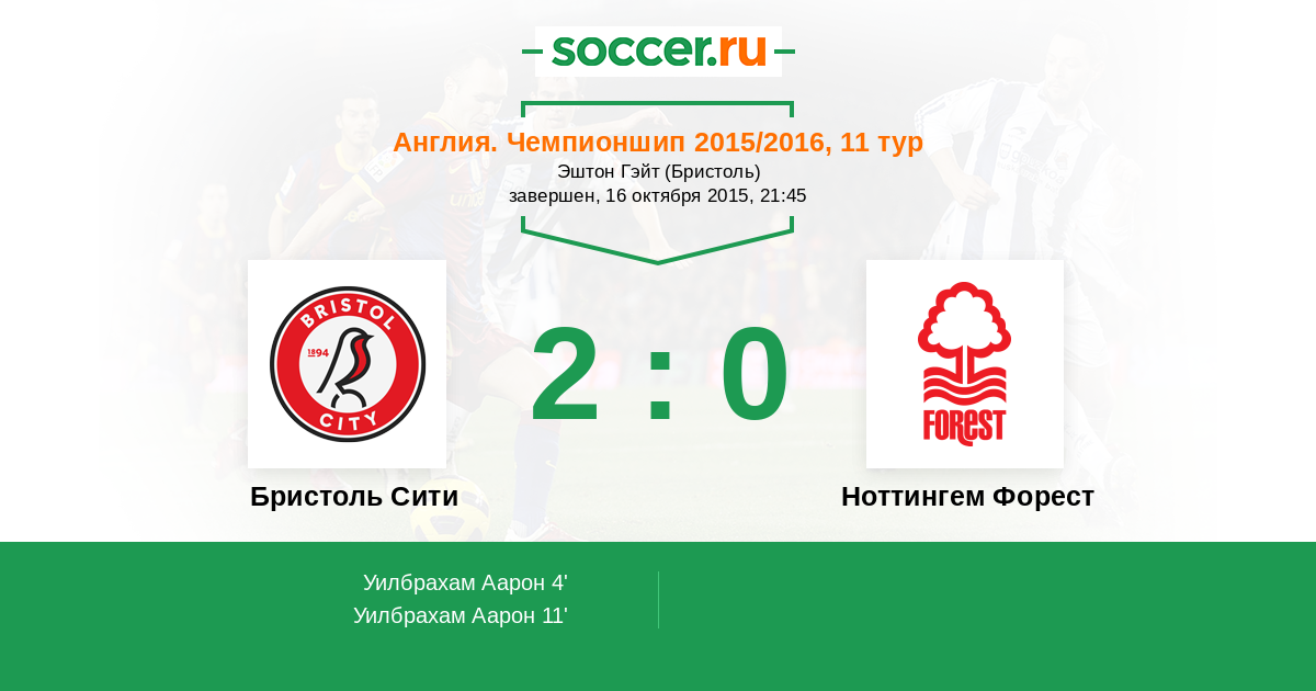 Протокол матча Бристоль Сити против Ноттингем Форест