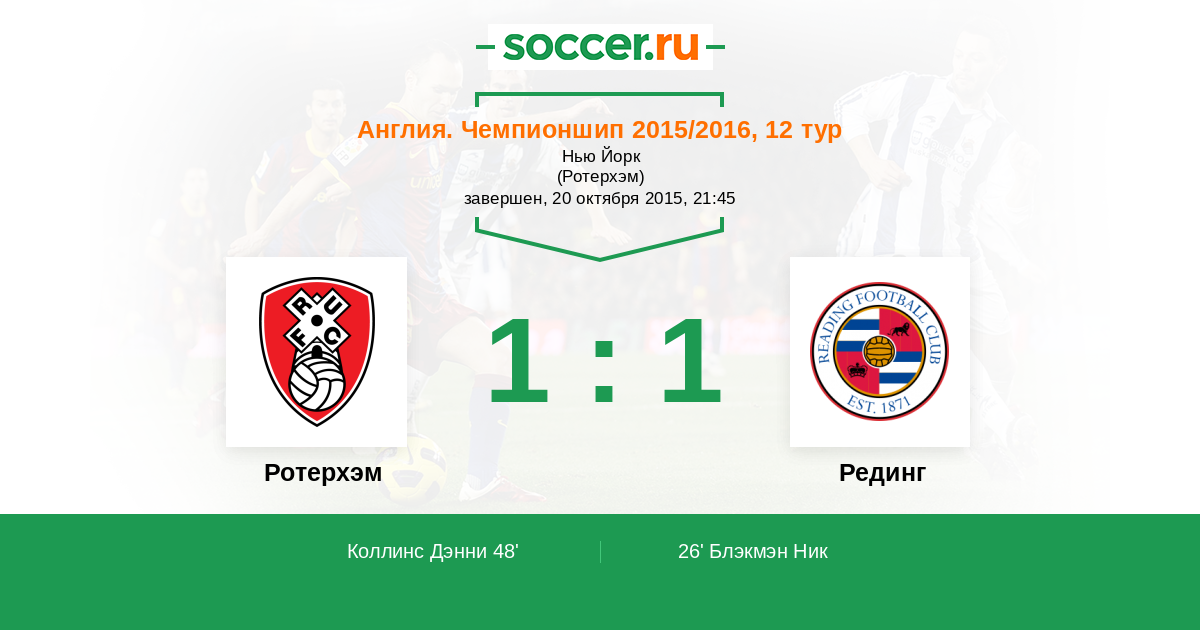 Протокол матча Ротерхэм против Рединг