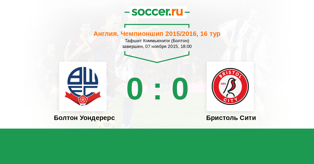 Протокол матча Болтон Уондерерс против Бристоль Сити