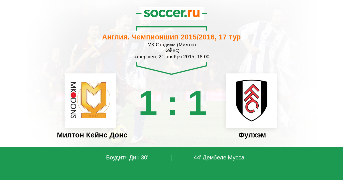 Протокол матча Милтон Кейнс Донс против Фулхэм