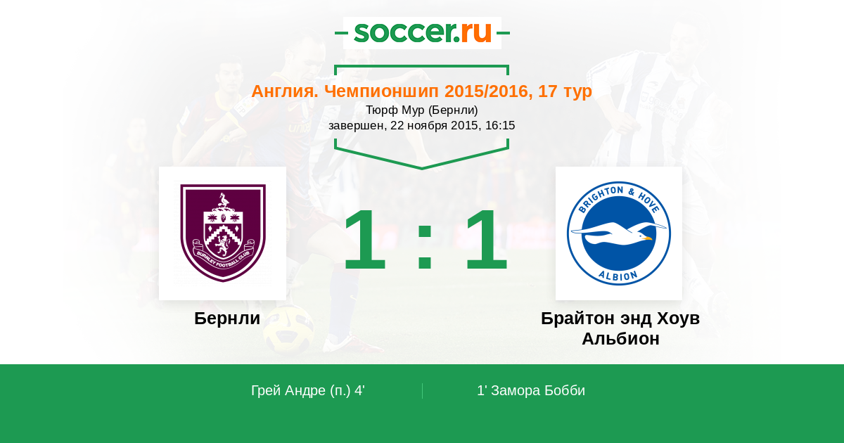 Протокол матча Бернли против Брайтон энд Хоув Альбион