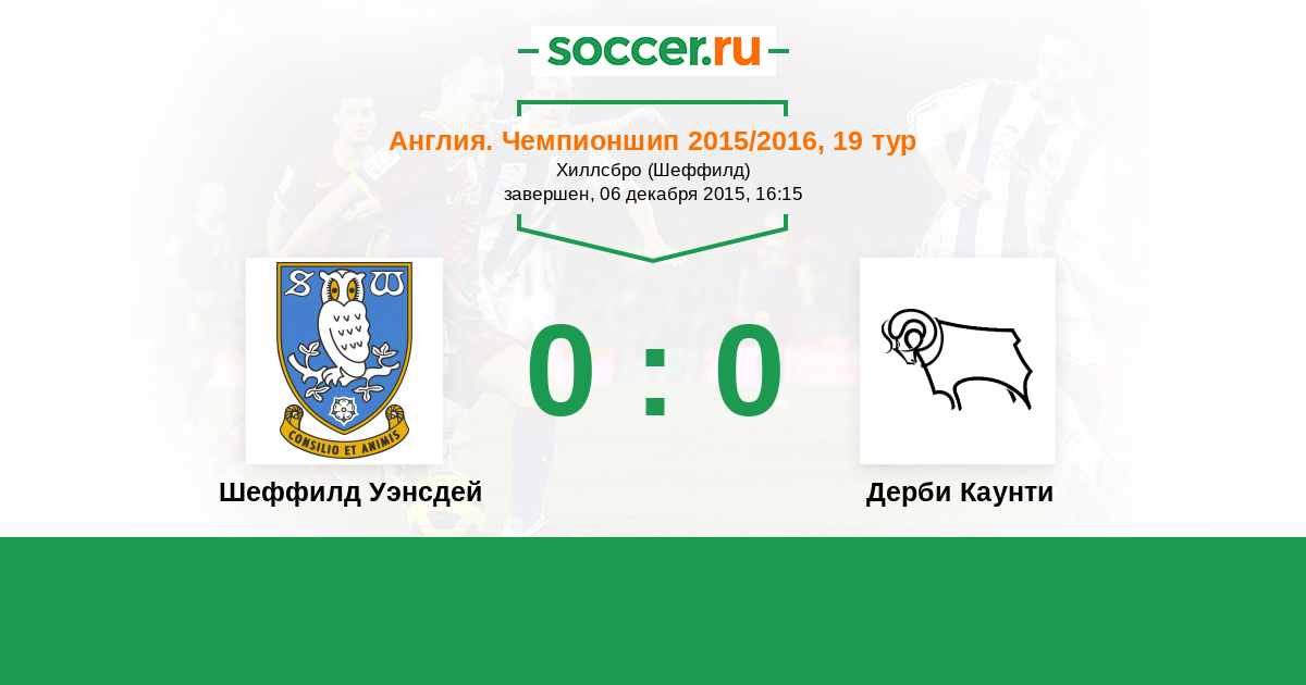 Протокол матча Шеффилд Уэнсдей против Дерби Каунти