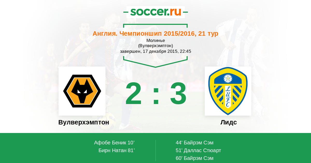 44' (1:1) Байрэм Сэм (2) (Вуд Крис (9))