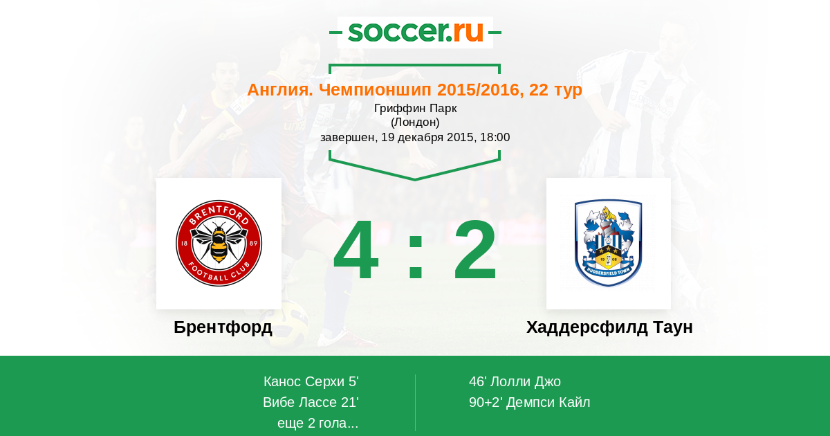 Протокол матча Брентфорд против Хаддерсфилд Таун