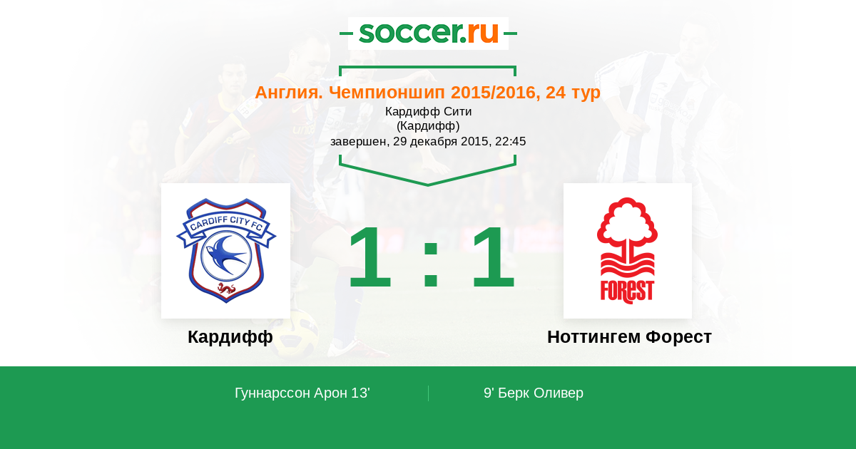 Протокол матча Кардифф против Ноттингем Форест