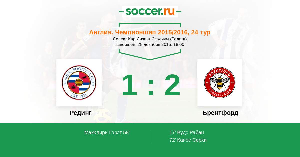 Протокол матча Рединг против Брентфорд