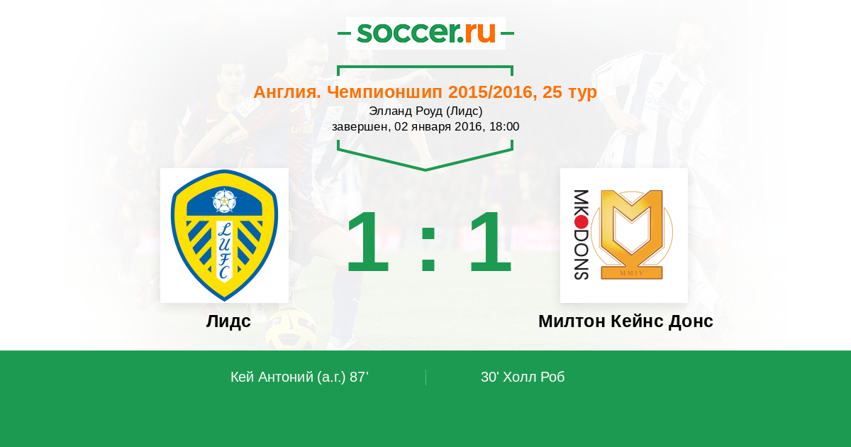 Протокол матча Лидс против Милтон Кейнс Донс