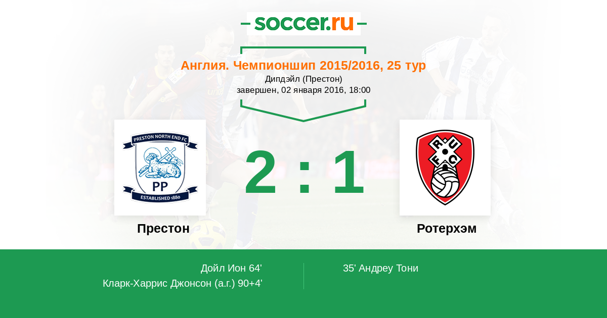 Протокол матча Престон против Ротерхэм