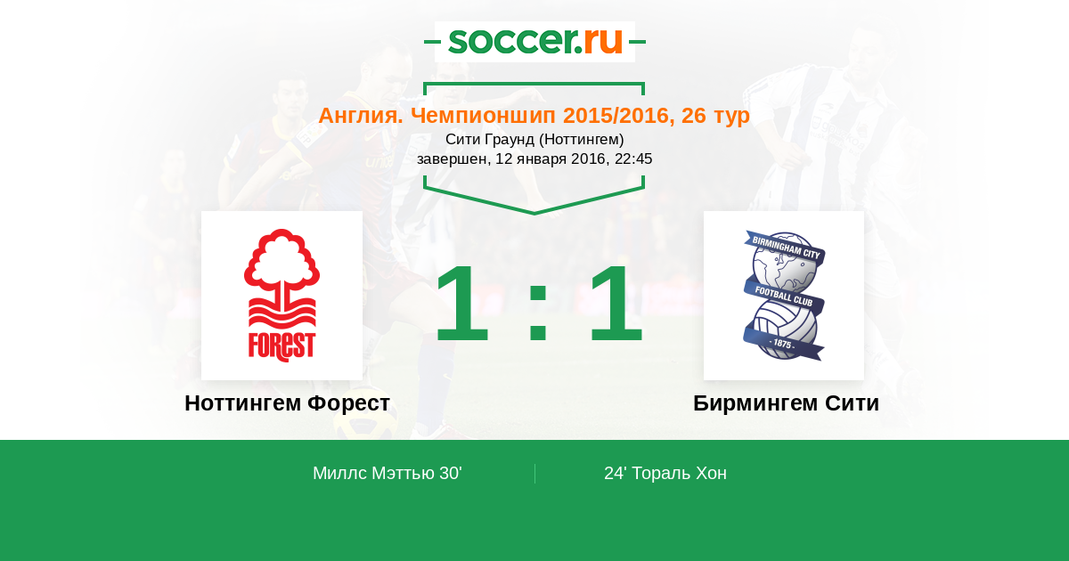 Протокол матча Ноттингем Форест против Бирмингем Сити