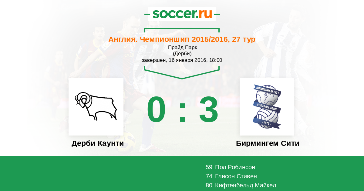 Протокол матча Дерби Каунти против Бирмингем Сити