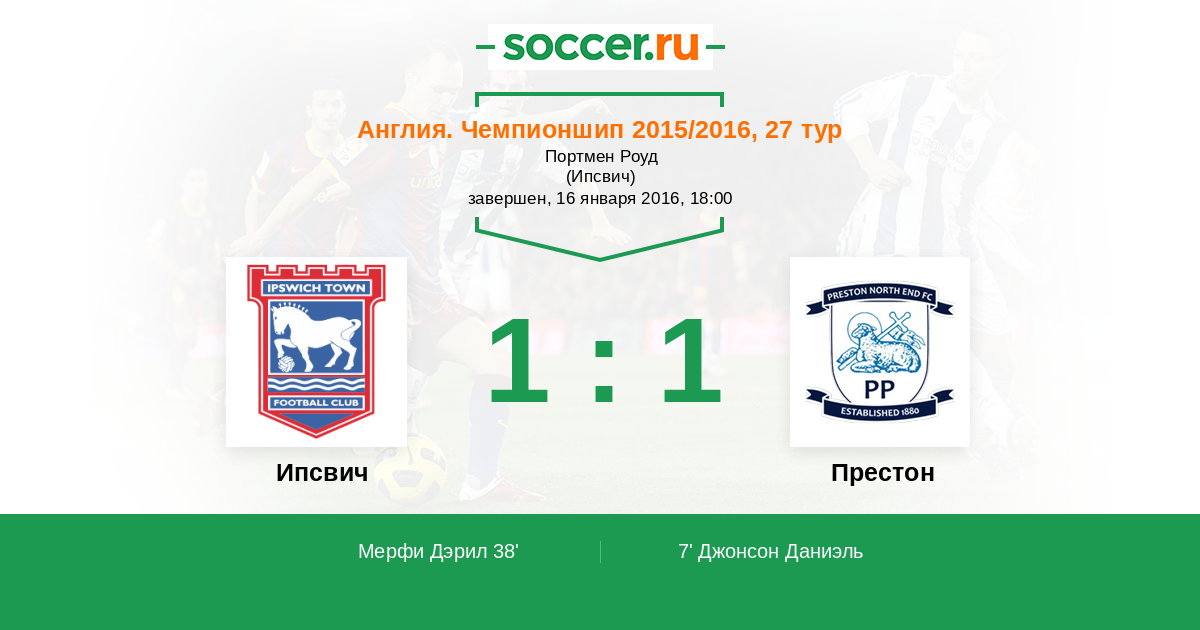 Протокол матча Ипсвич против Престон