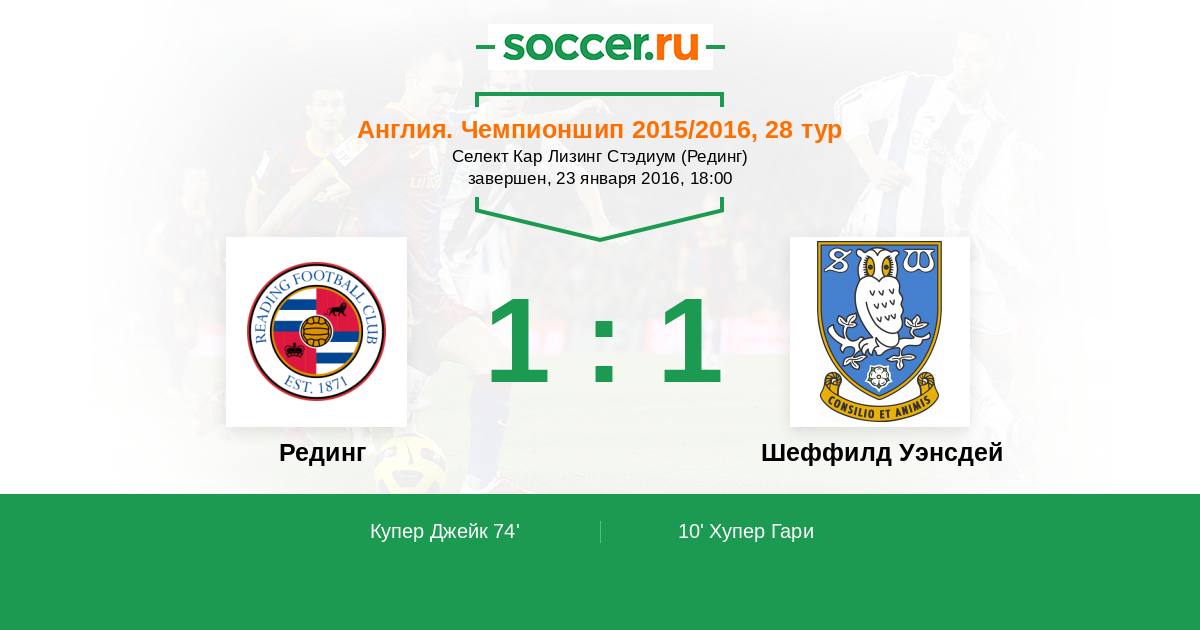 Протокол матча Рединг против Шеффилд Уэнсдей