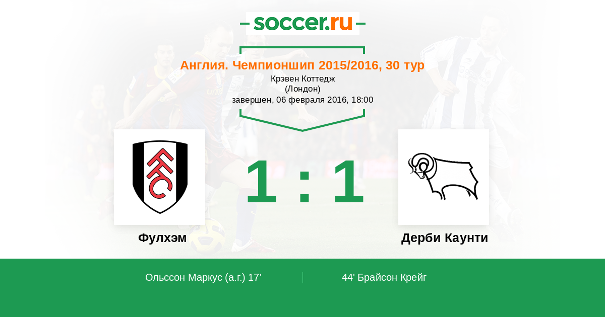 44' (1:1) Брайсон Крейг (4) (Мартин Крис (9))