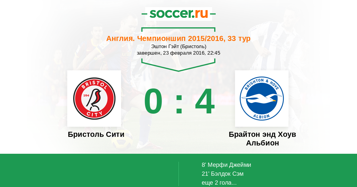 Протокол матча Бристоль Сити против Брайтон энд Хоув Альбион