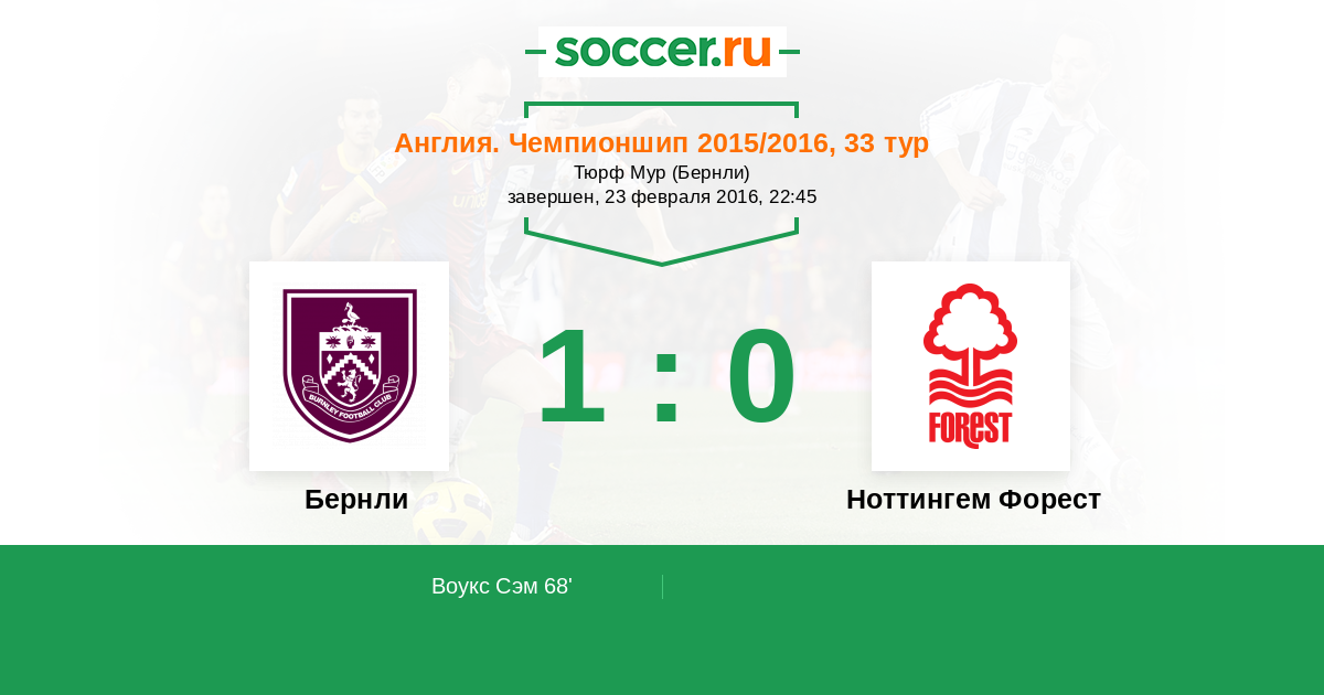 Протокол матча Бернли против Ноттингем Форест