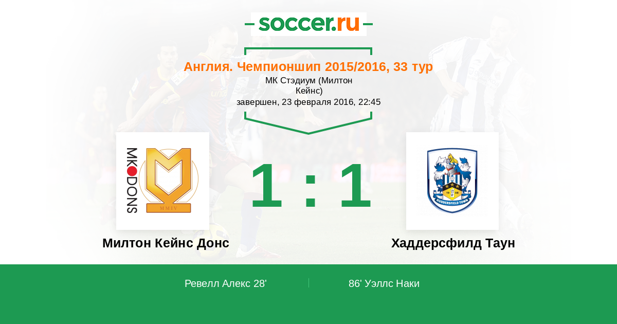 Протокол матча Милтон Кейнс Донс против Хаддерсфилд Таун