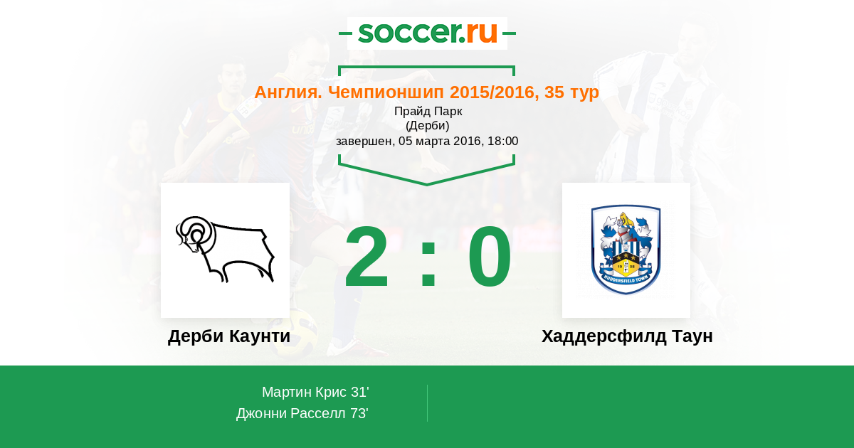 Протокол матча Дерби Каунти против Хаддерсфилд Таун