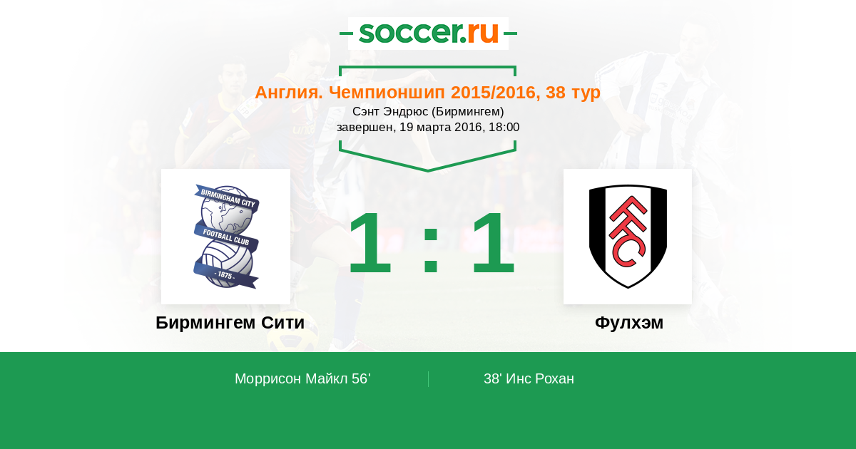 38' (0:1) Инс Рохан (31) (Кэрни Том (10))