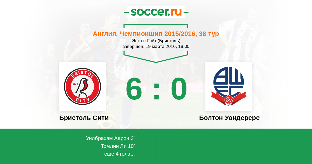 Протокол матча Бристоль Сити против Болтон Уондерерс
